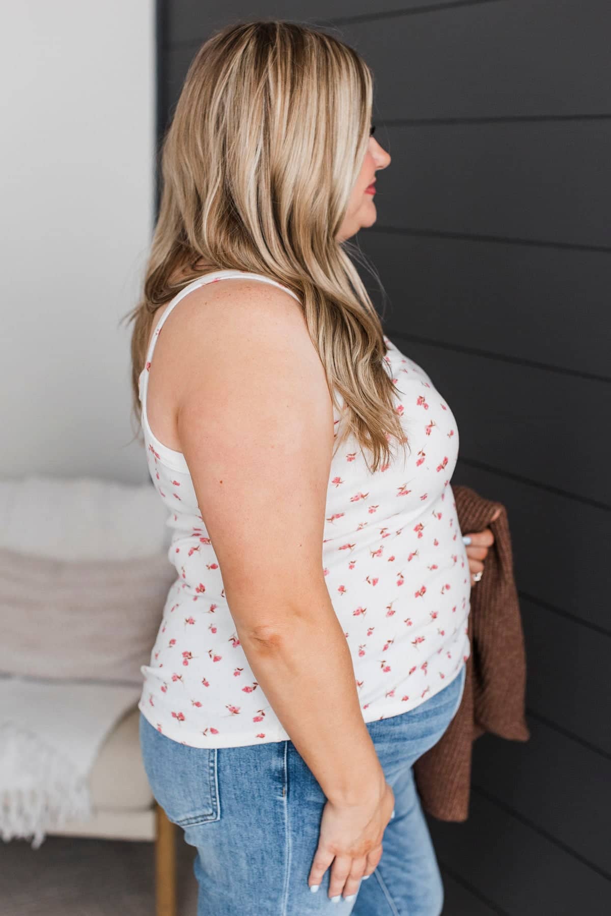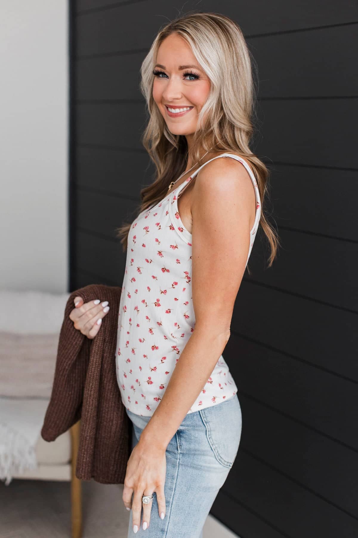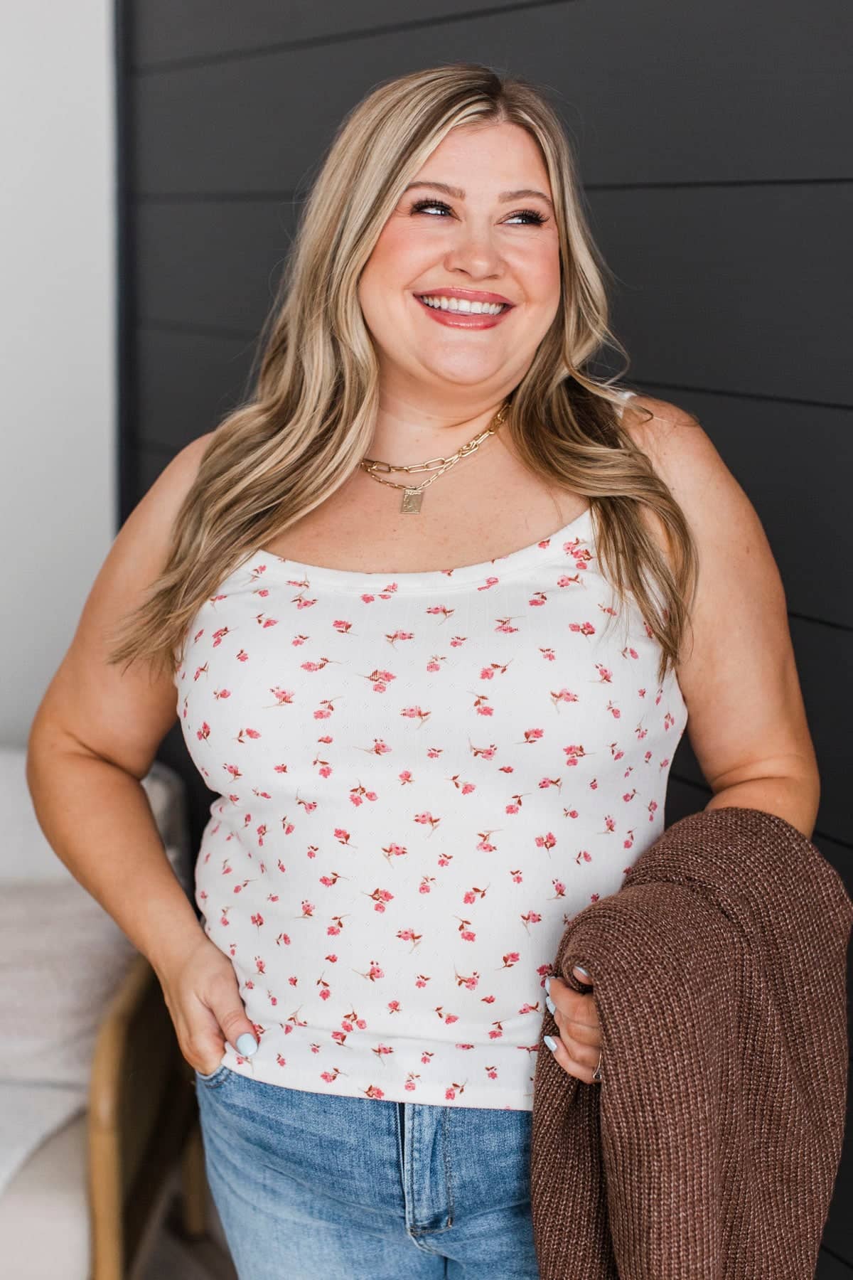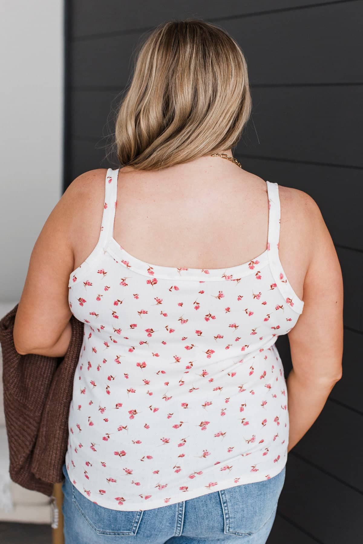 Putting Myself First Floral Tank Top- Ivory & Pink