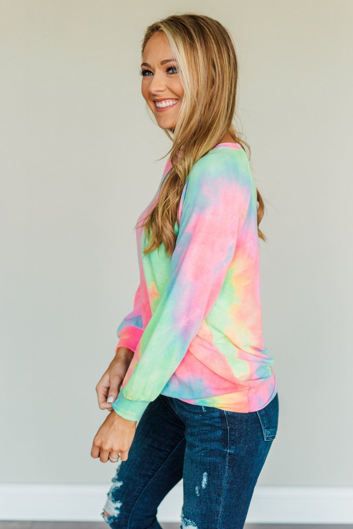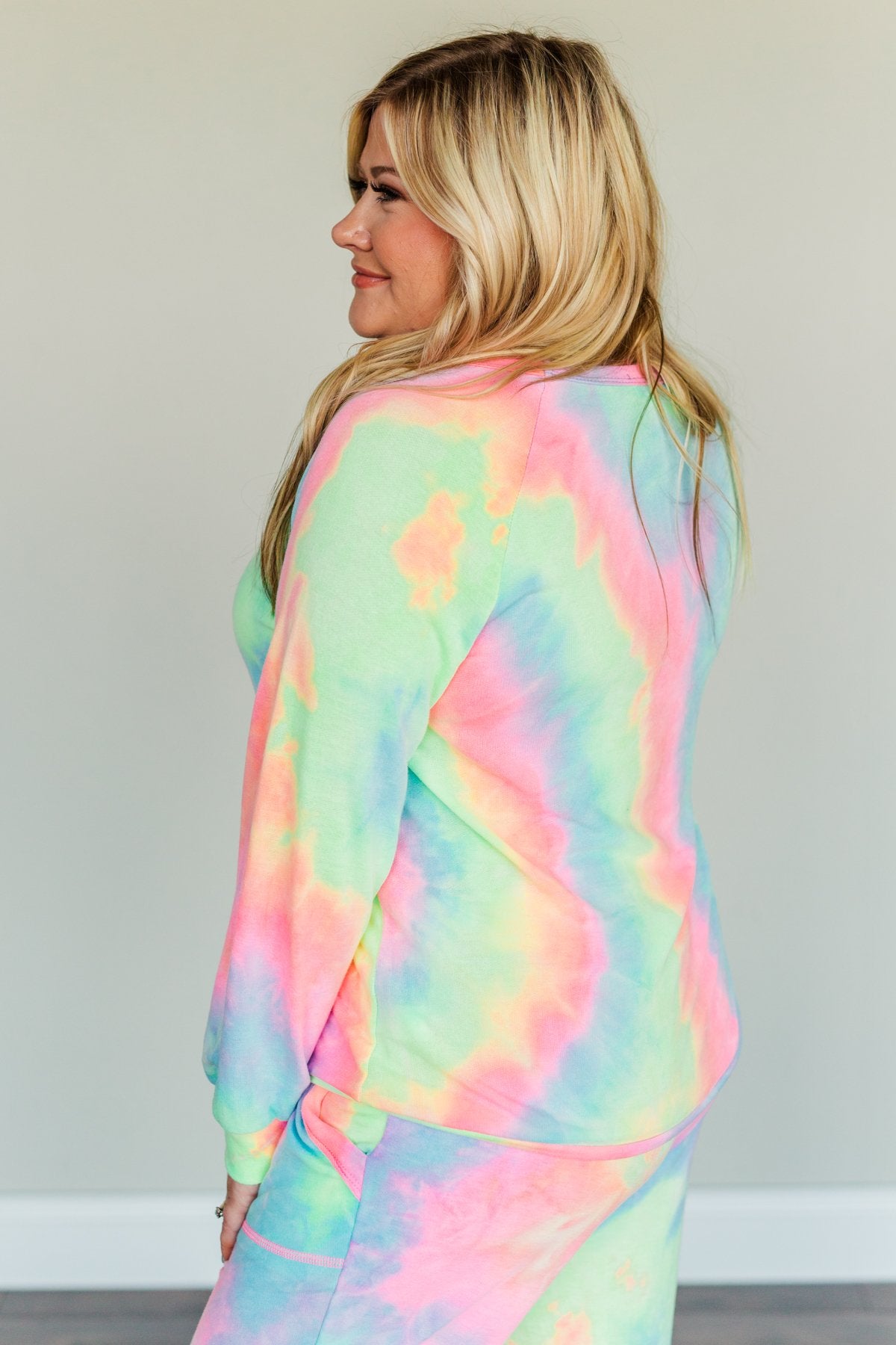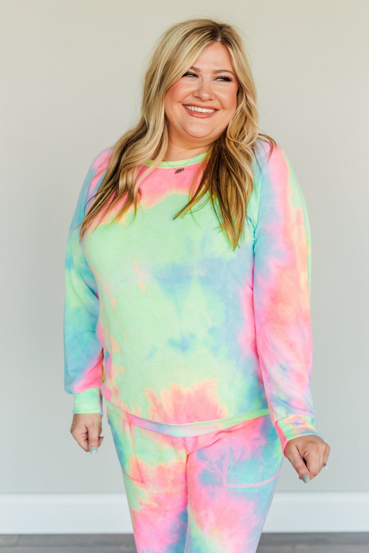 Brighten up those rainy spring days with this colorful, tie-dye lounge top! With sweet details like the arm bands, scoop neckline, bottom band, and a vibrant vivacious tie-dye print, this piece is the perfect lazy day essential! Wear this top with your favorite leggings or grab the matching joggers to complete your lovely lounge look!