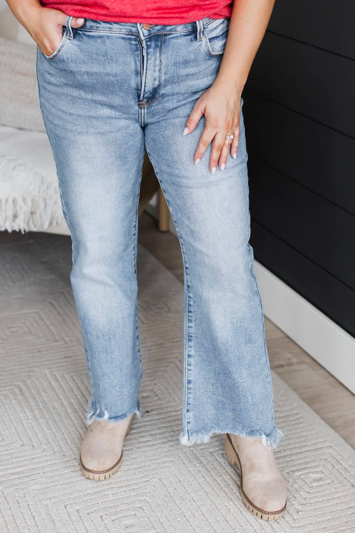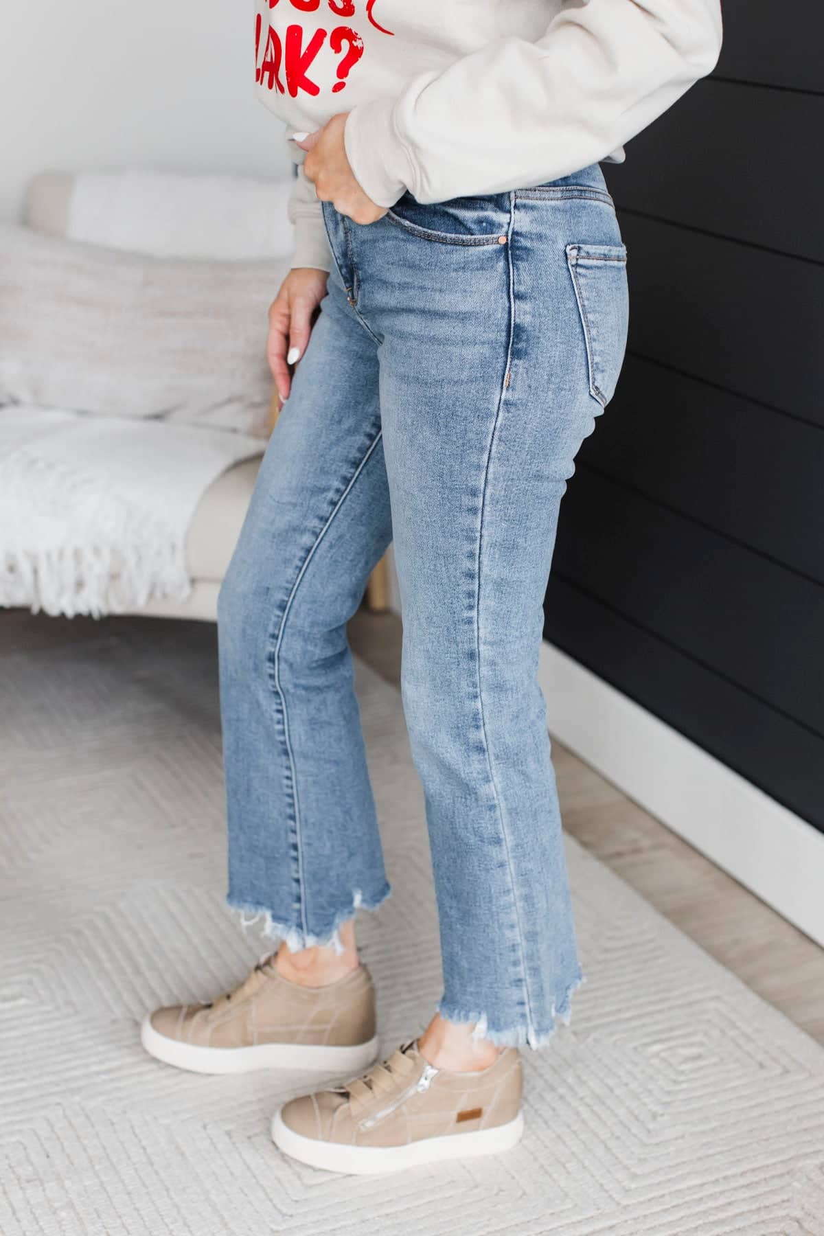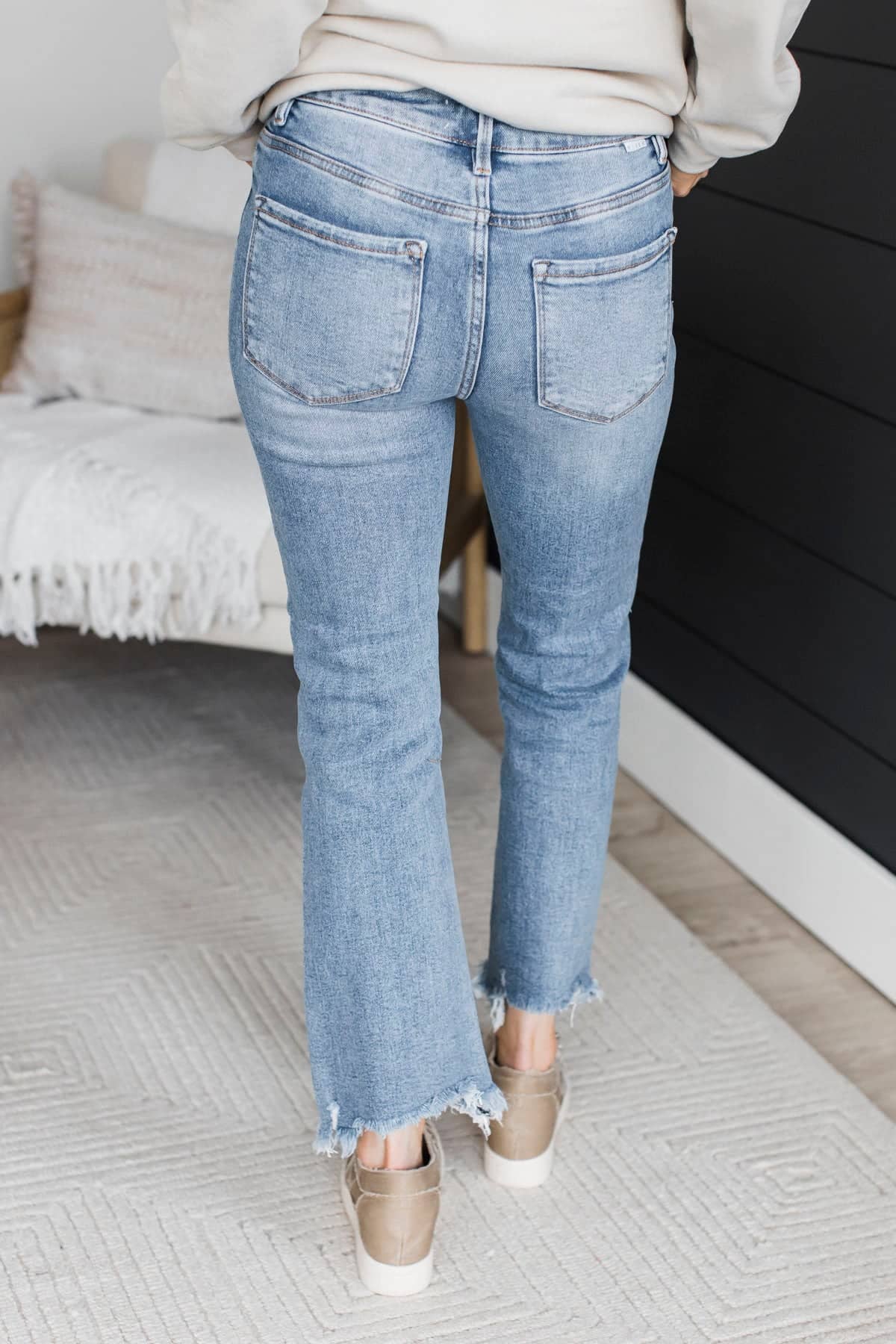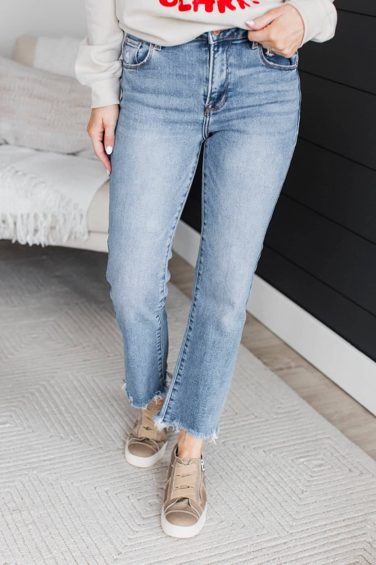 • Frayed ankle hems