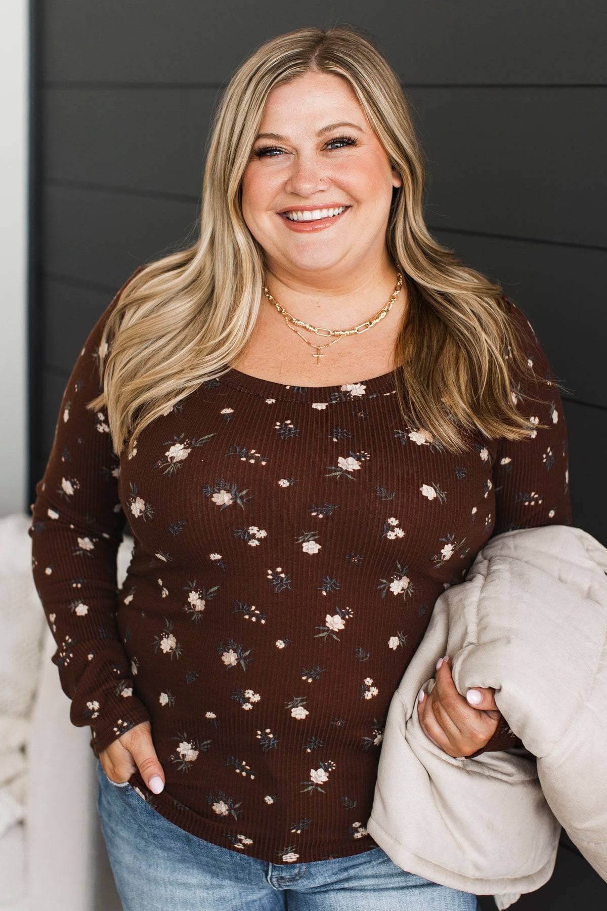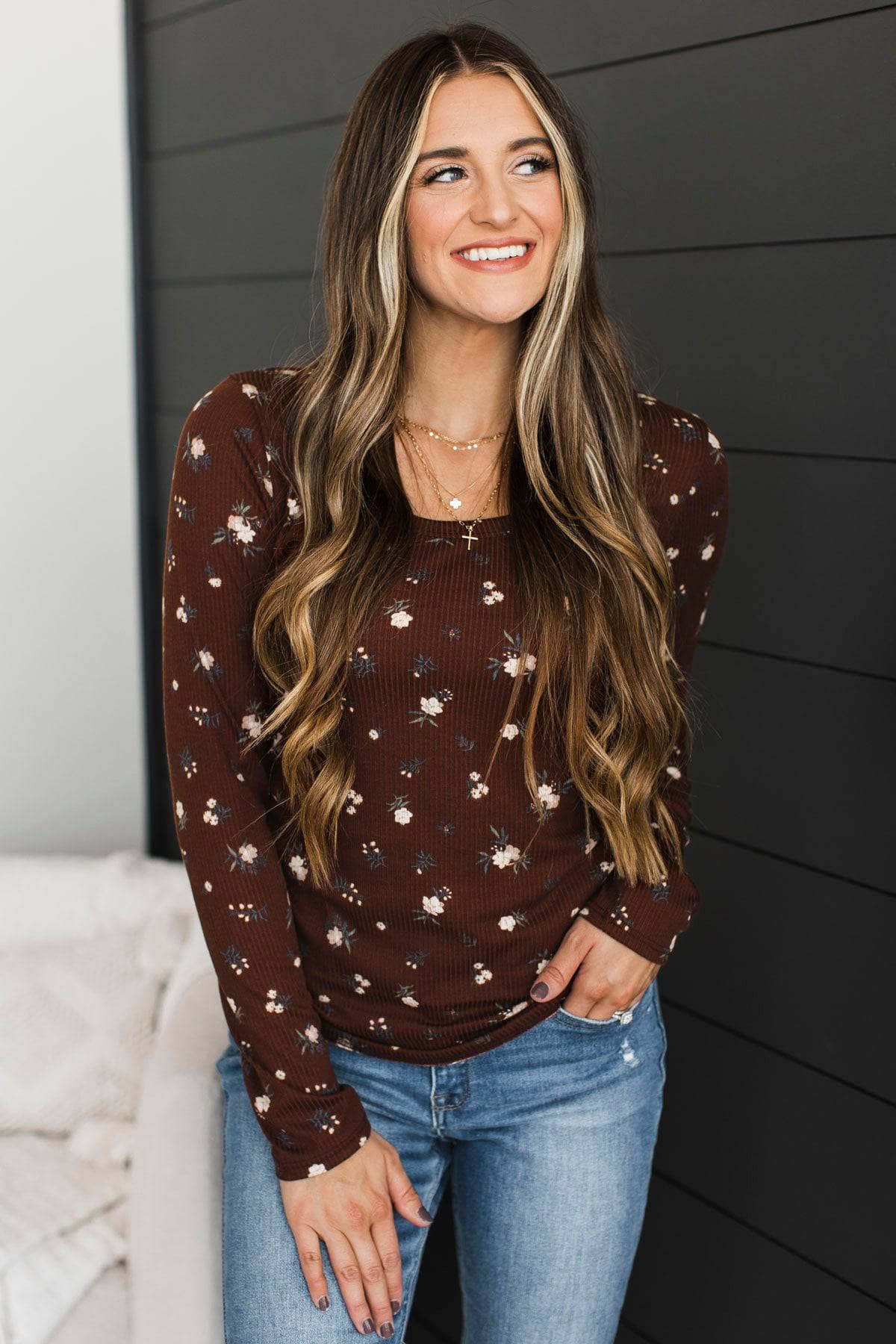 Feeling Hopeful Long Sleeve Floral Top- Chocolate