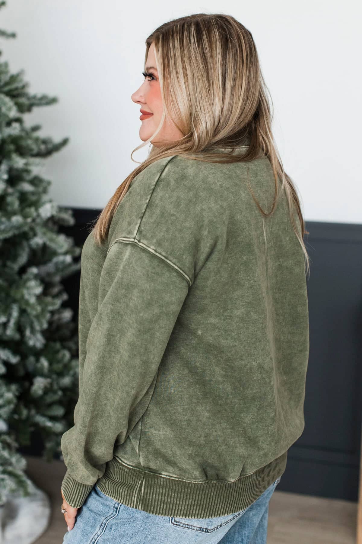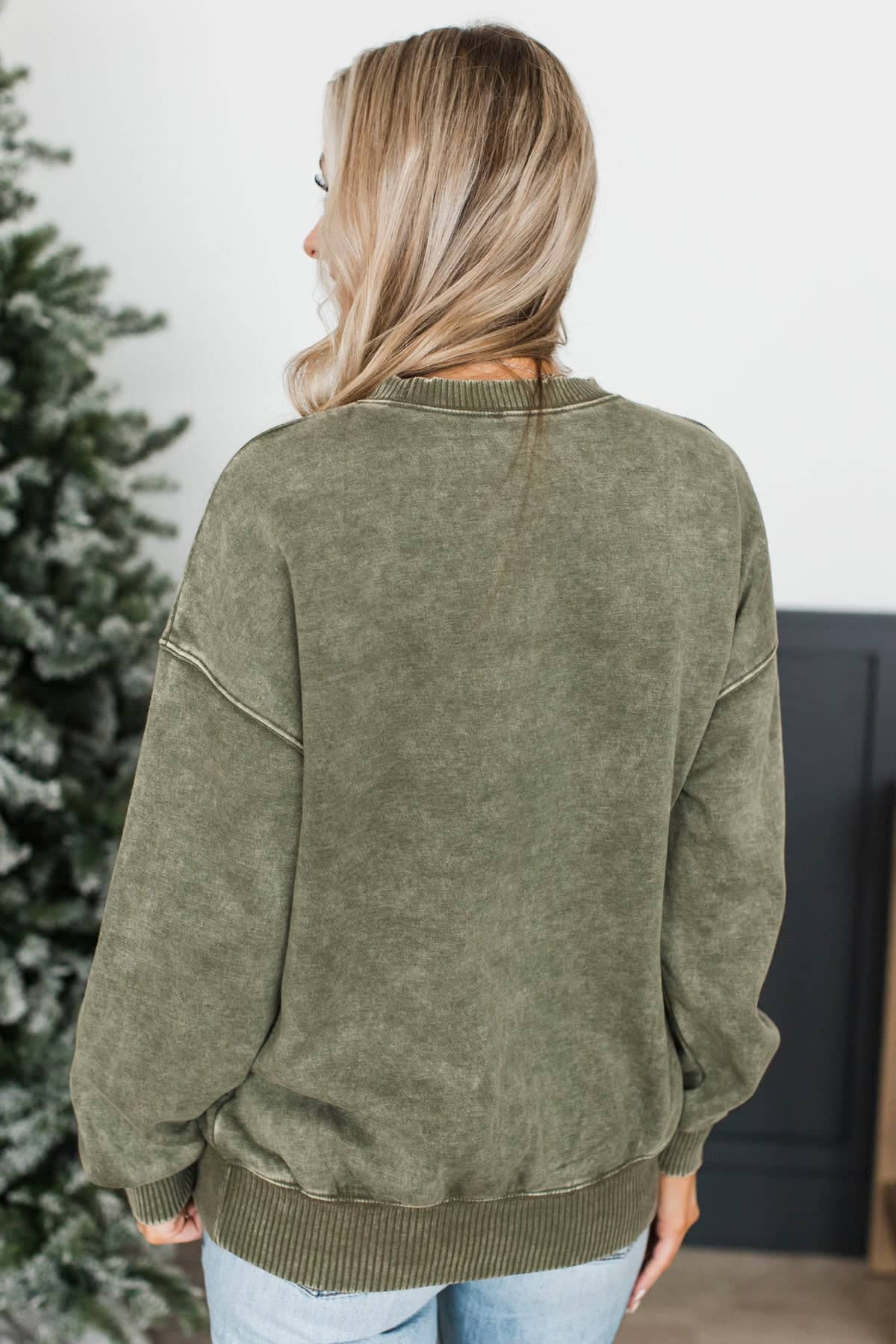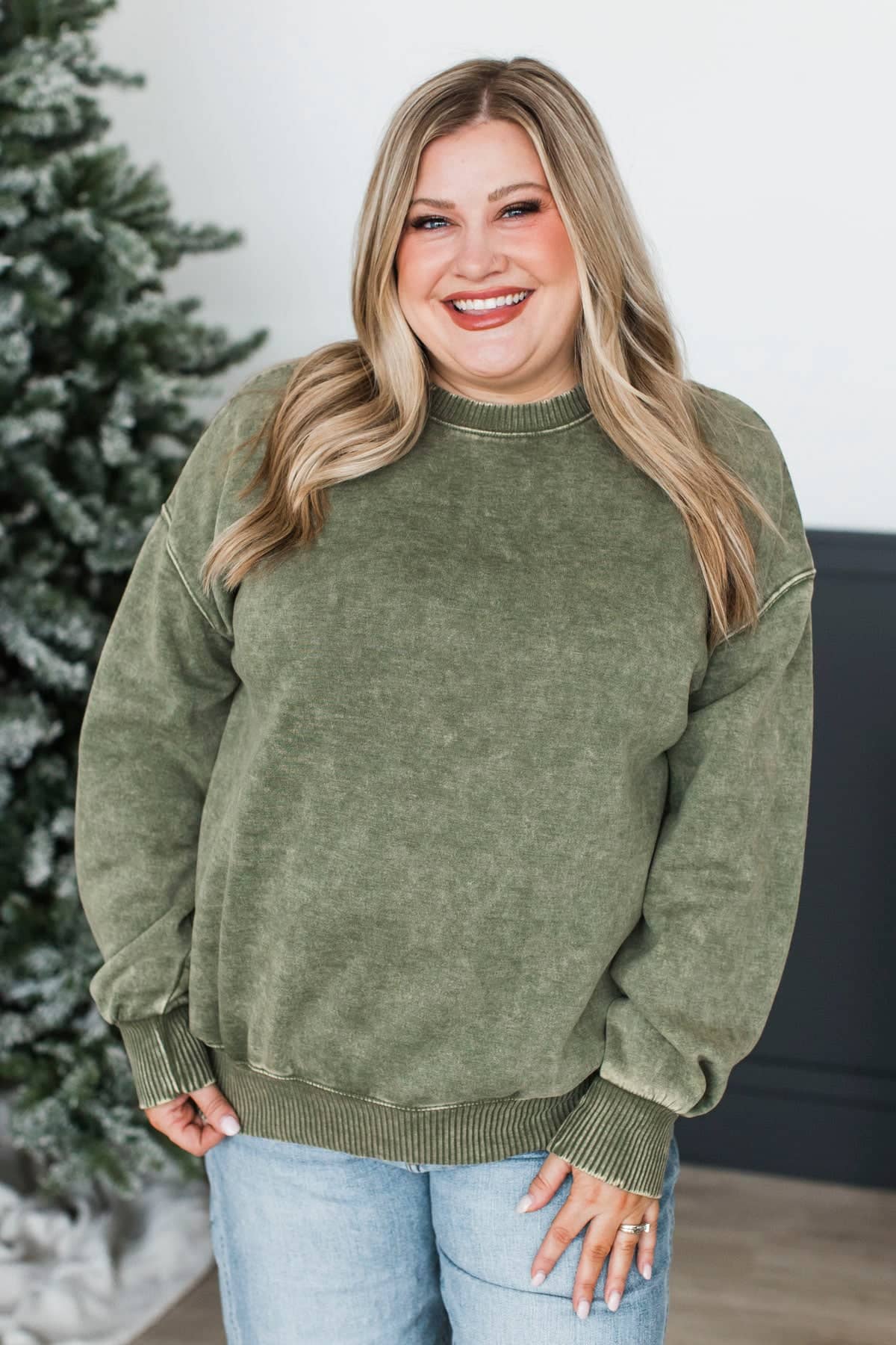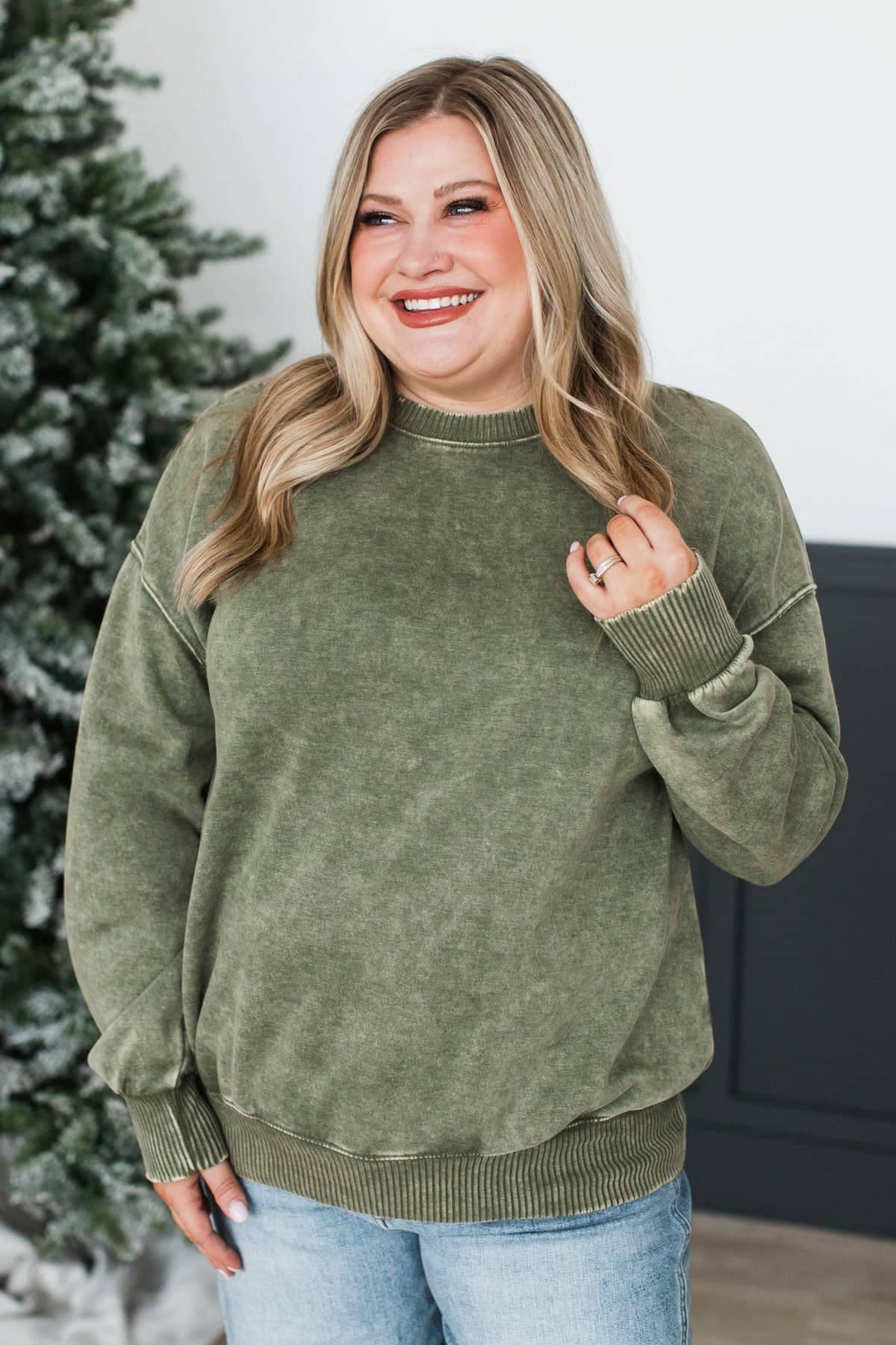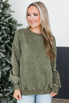Simply Delightful Stone Wash Pullover- Olive