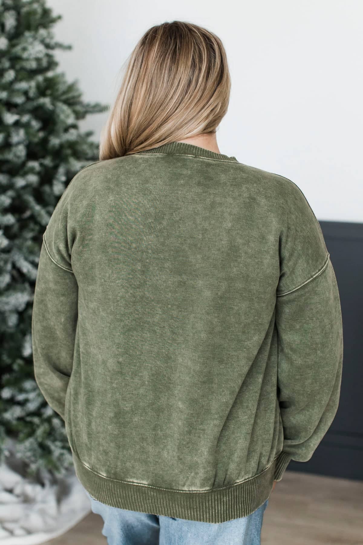 Olive Stone Wash Pullover Sweatshirt
