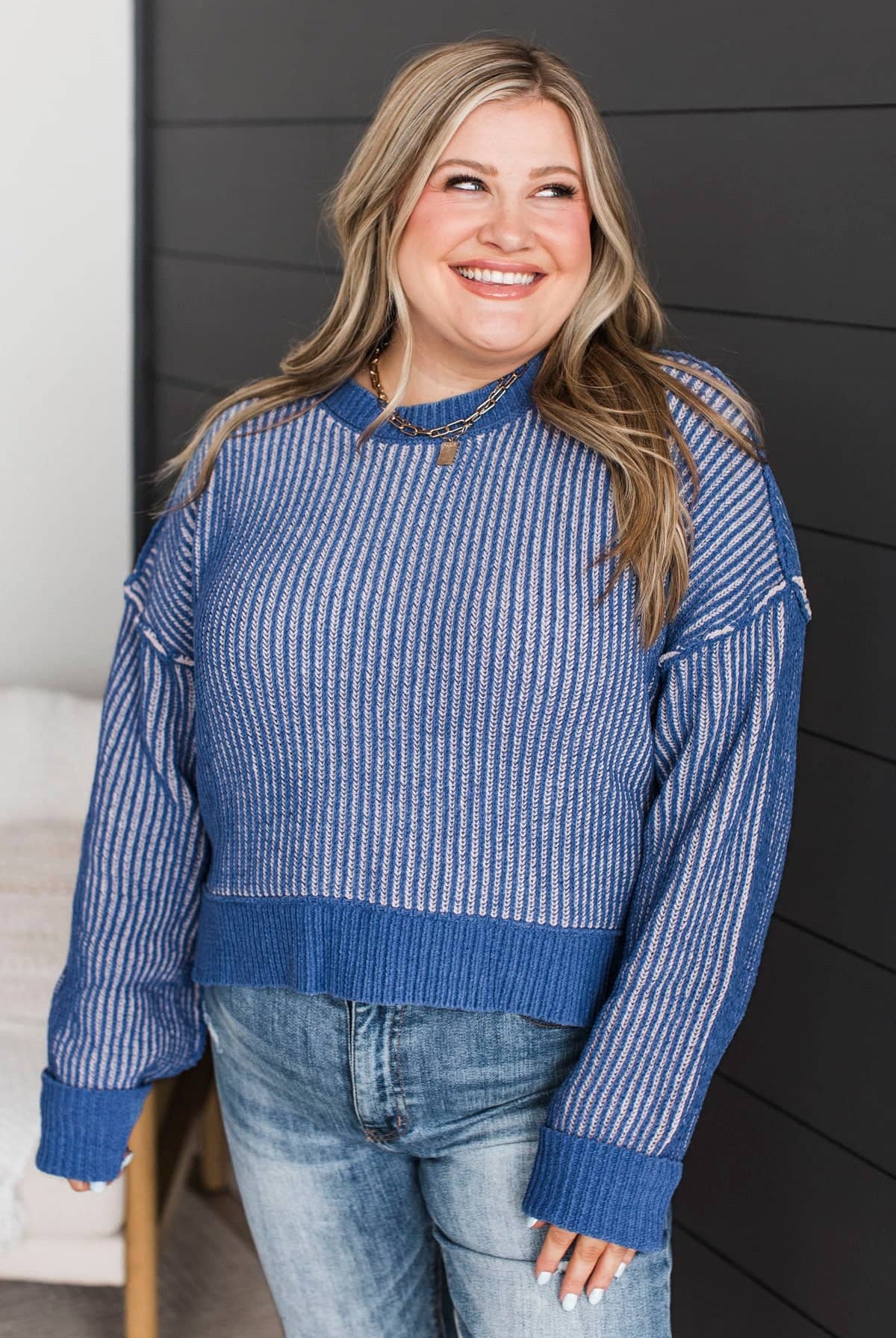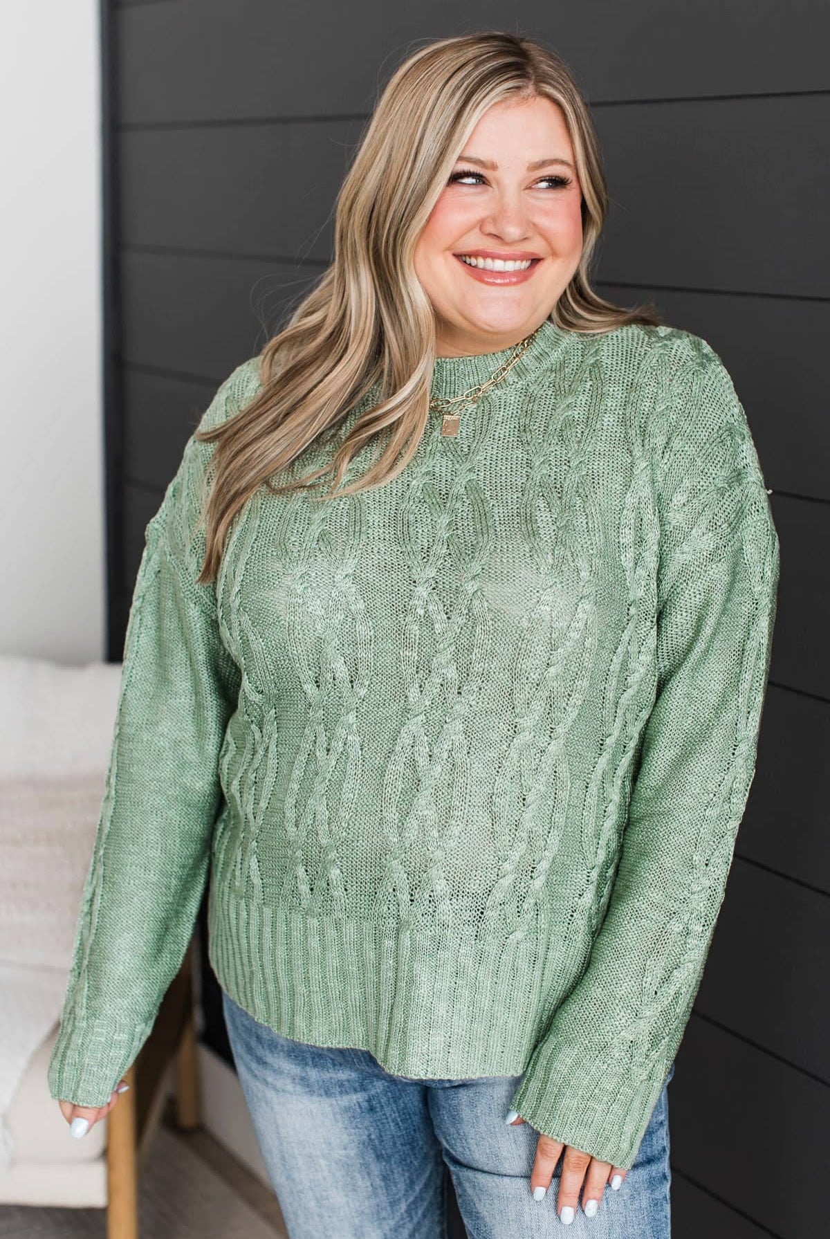 • Thick, two-tone cable knit material