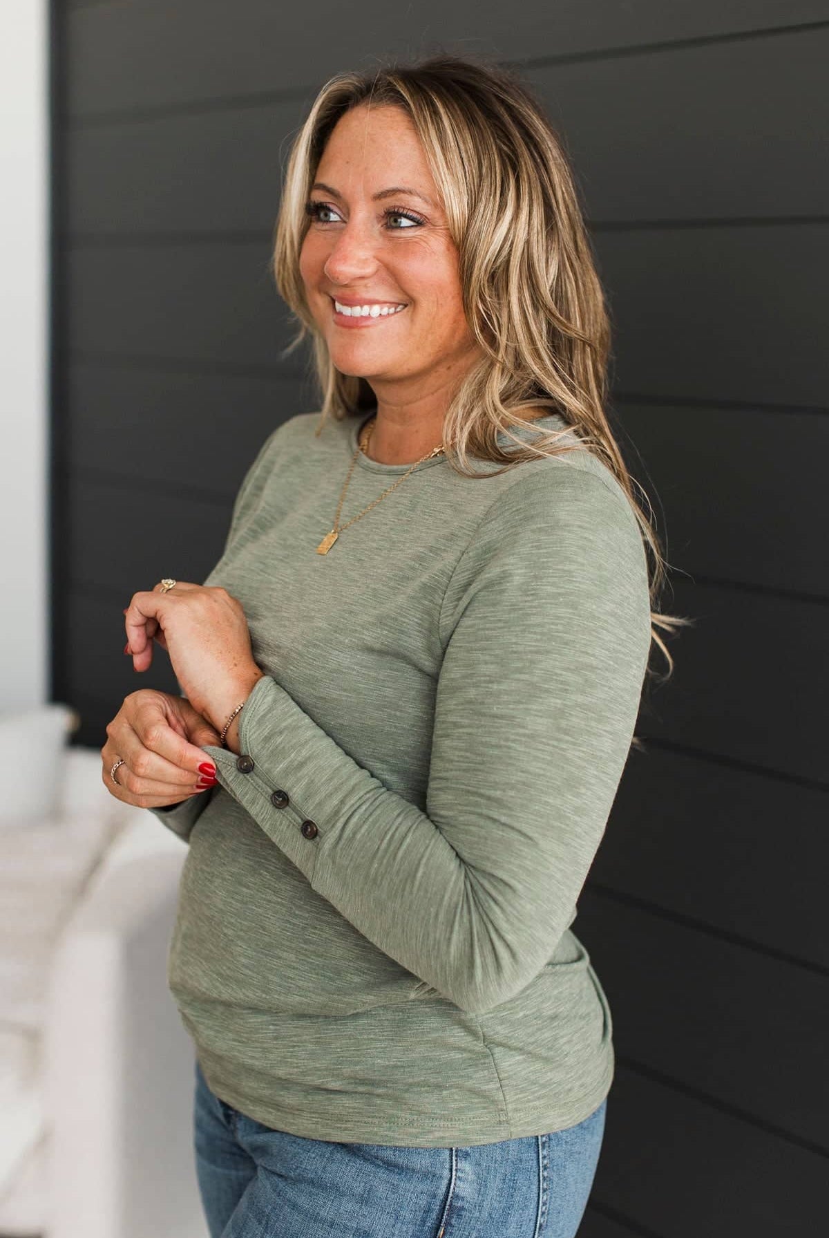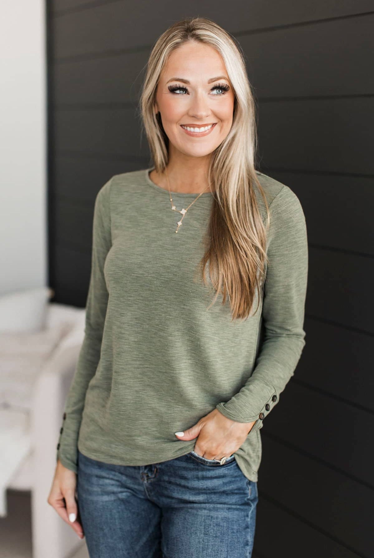 - Round neckline