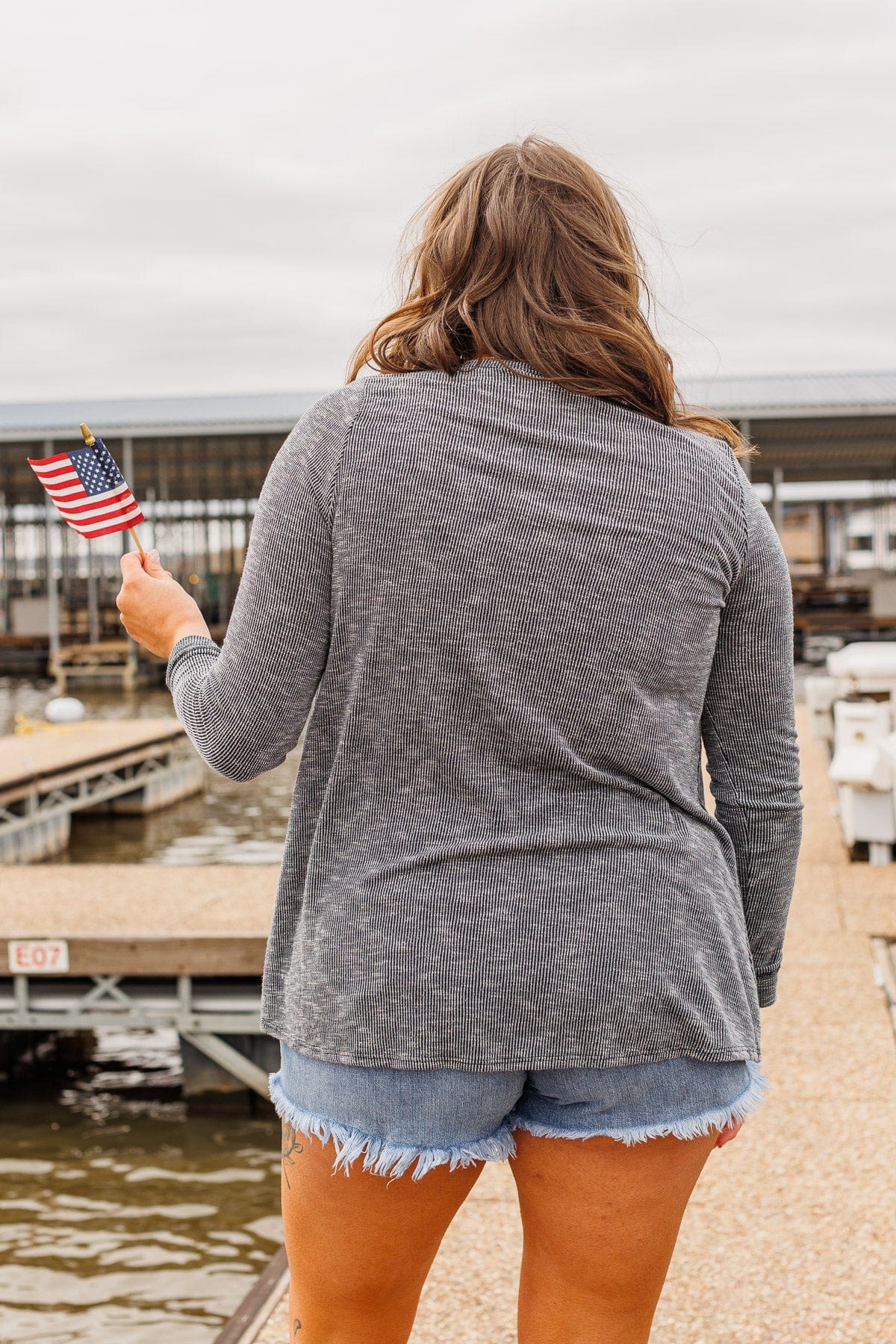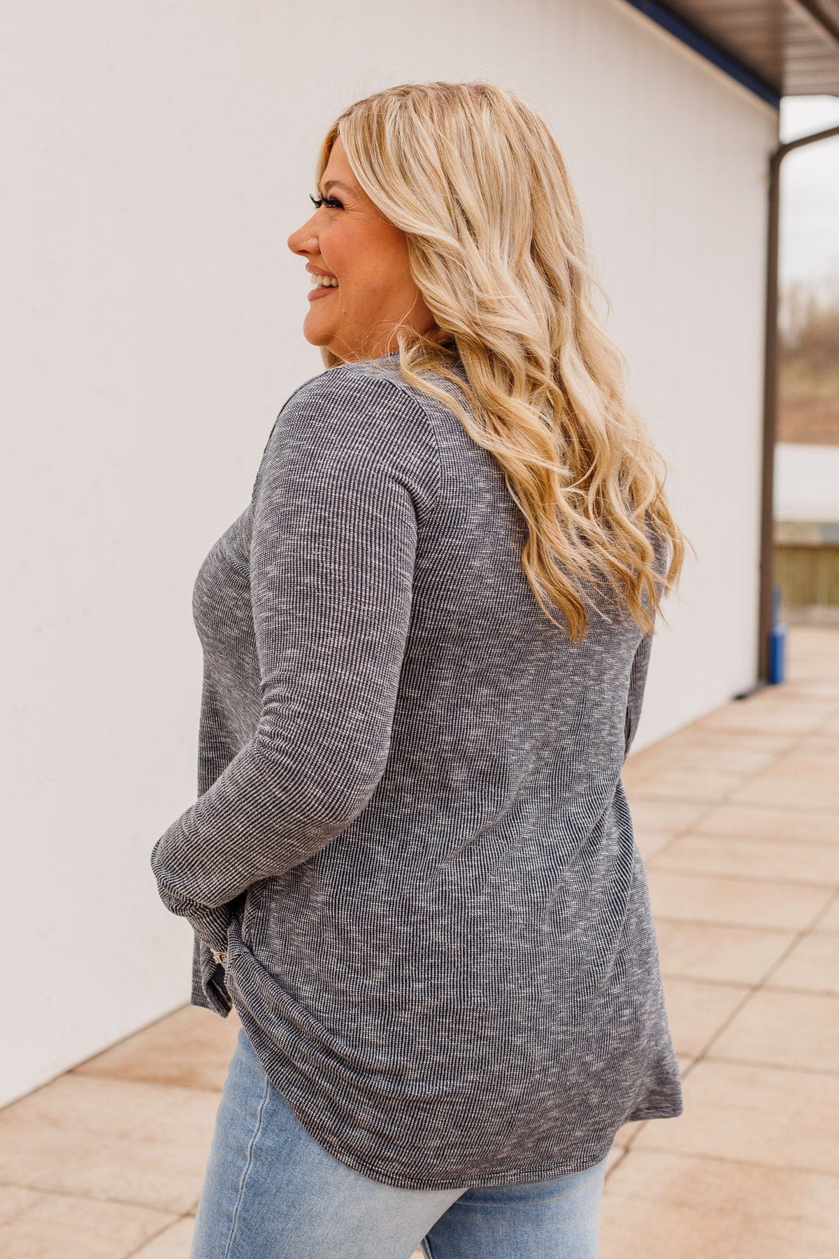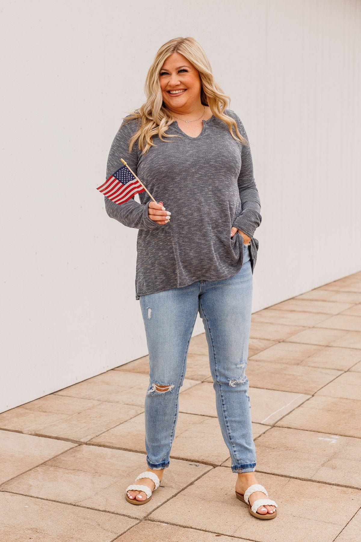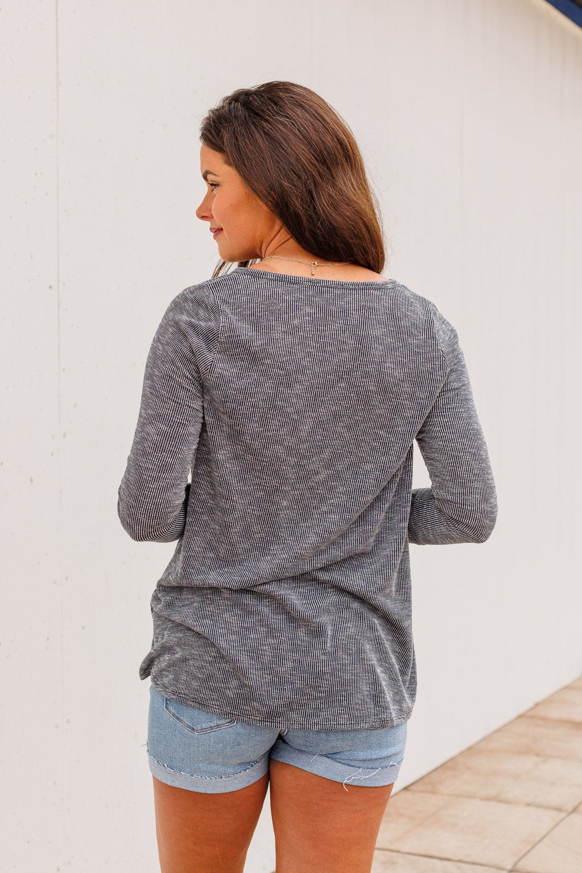 Thank Me Later Ribbed Knit Top- Dark Navy
