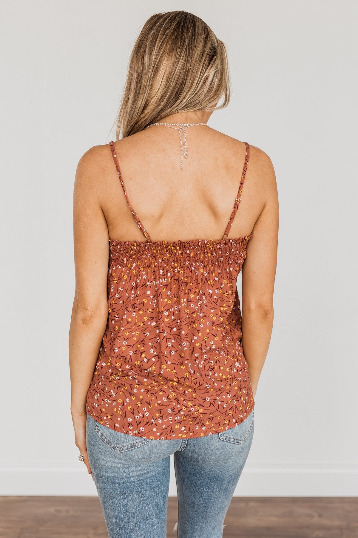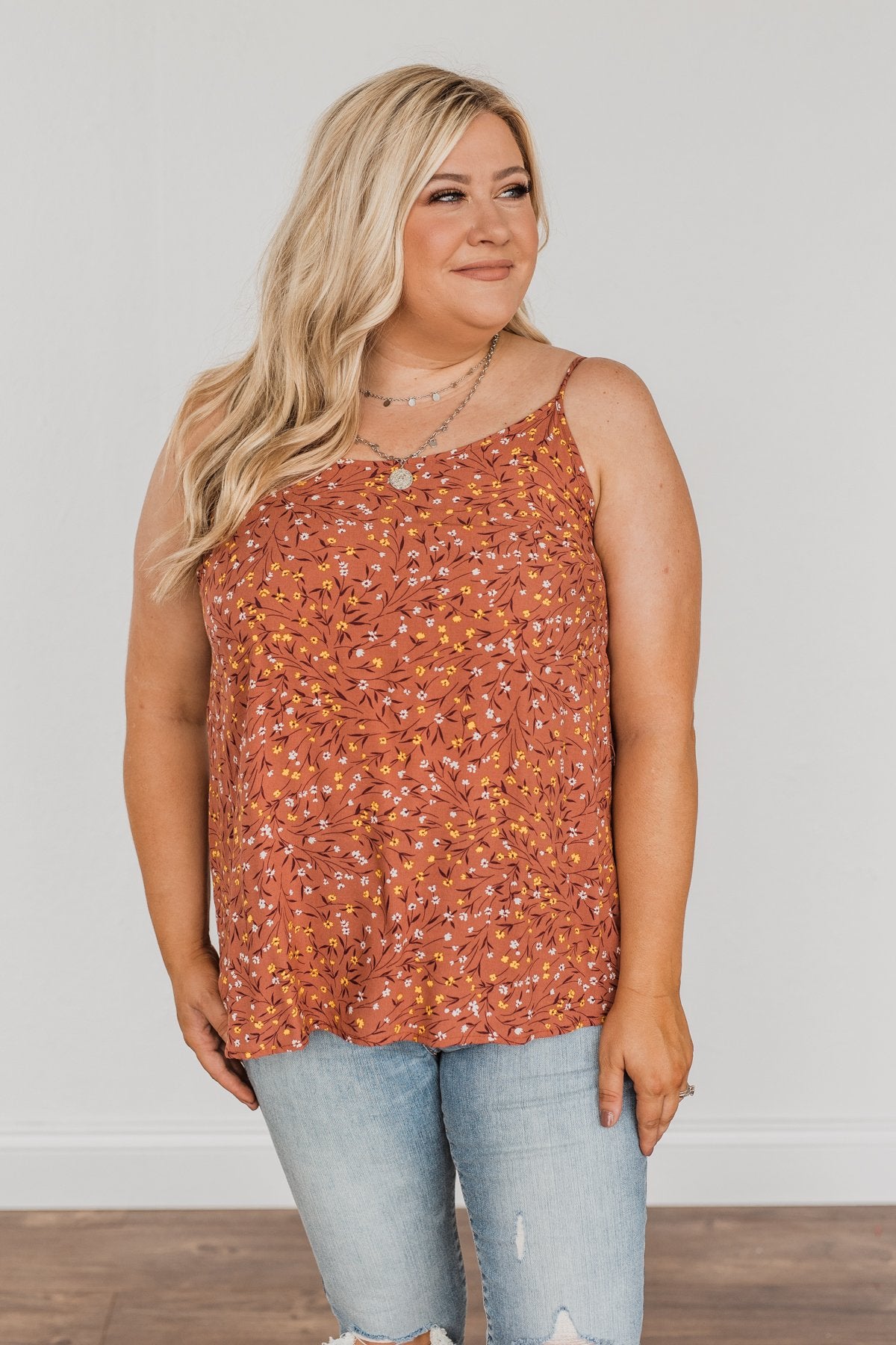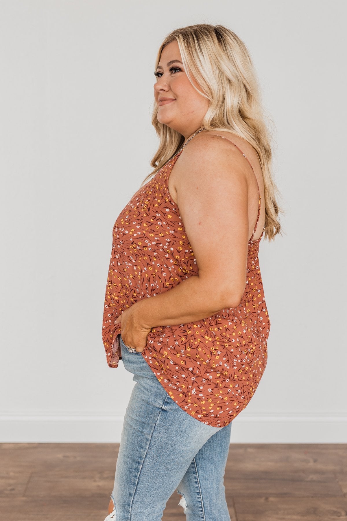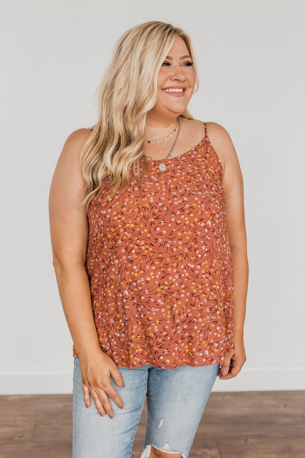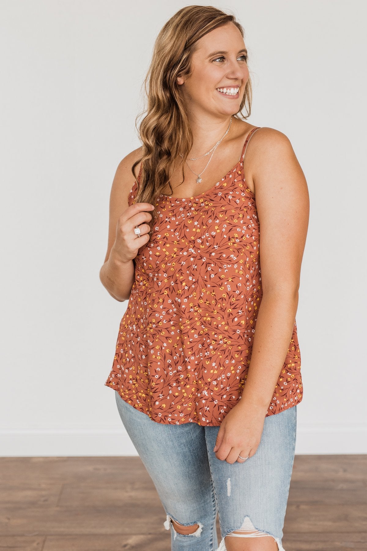The Cutest Apple In The Orchard Floral Tank Top- Rust