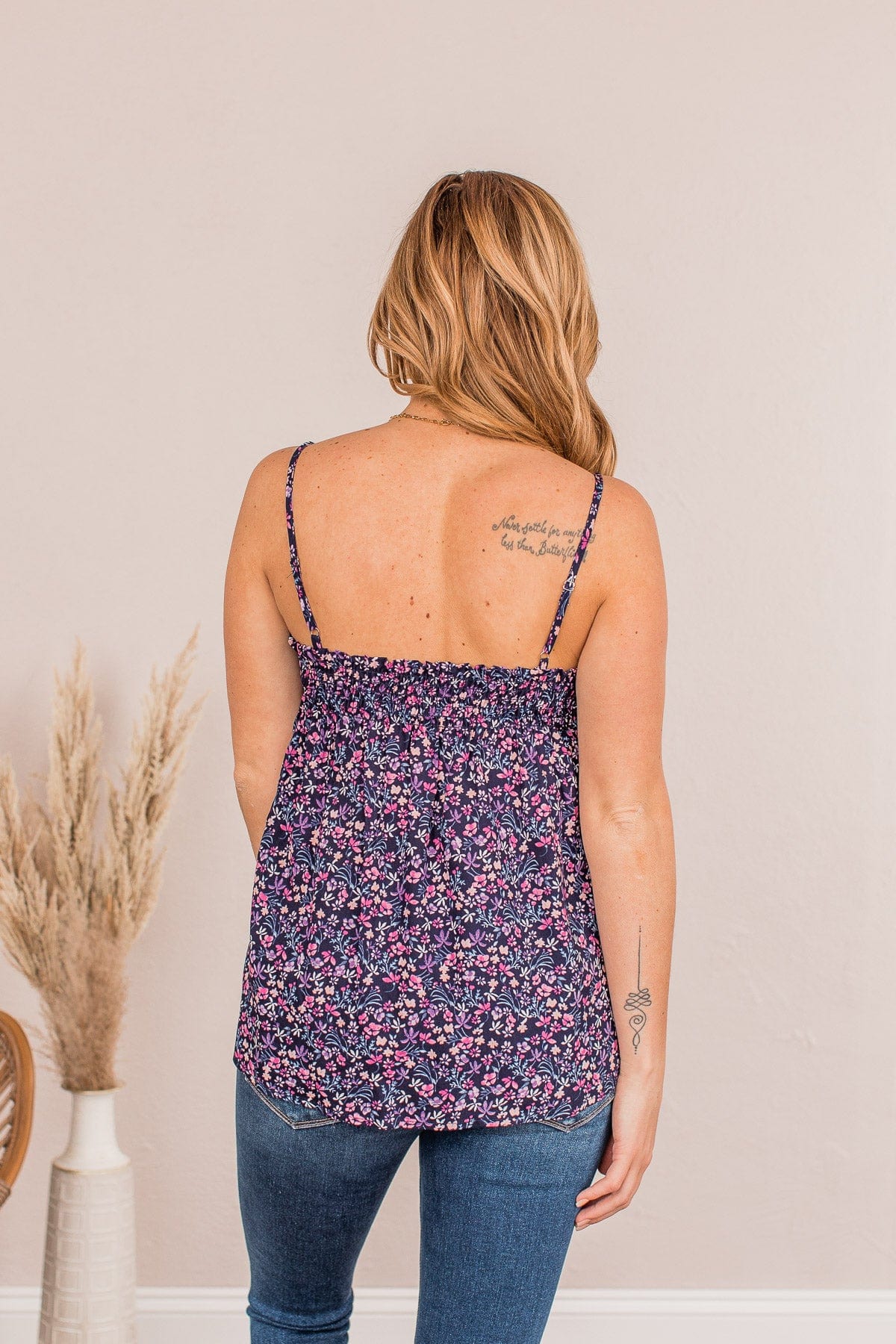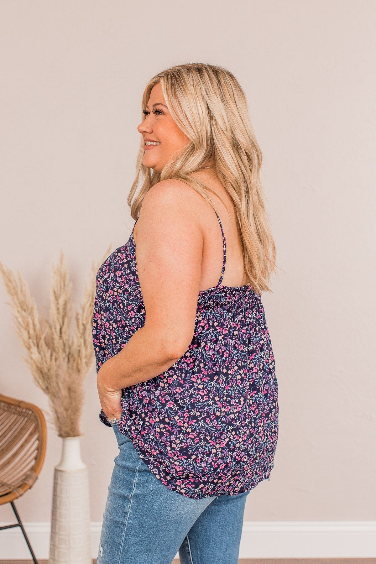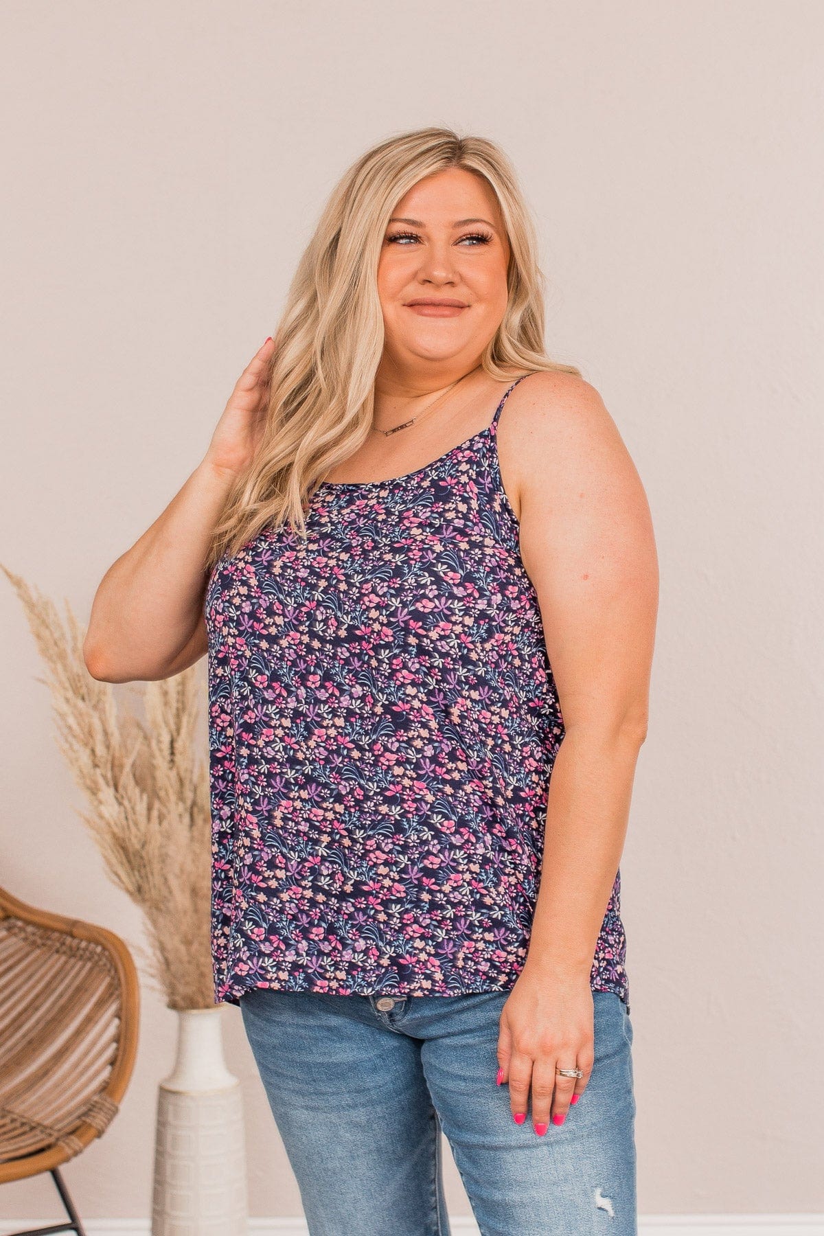 The Cutest Flower In The Field Floral Tank Top- Navy