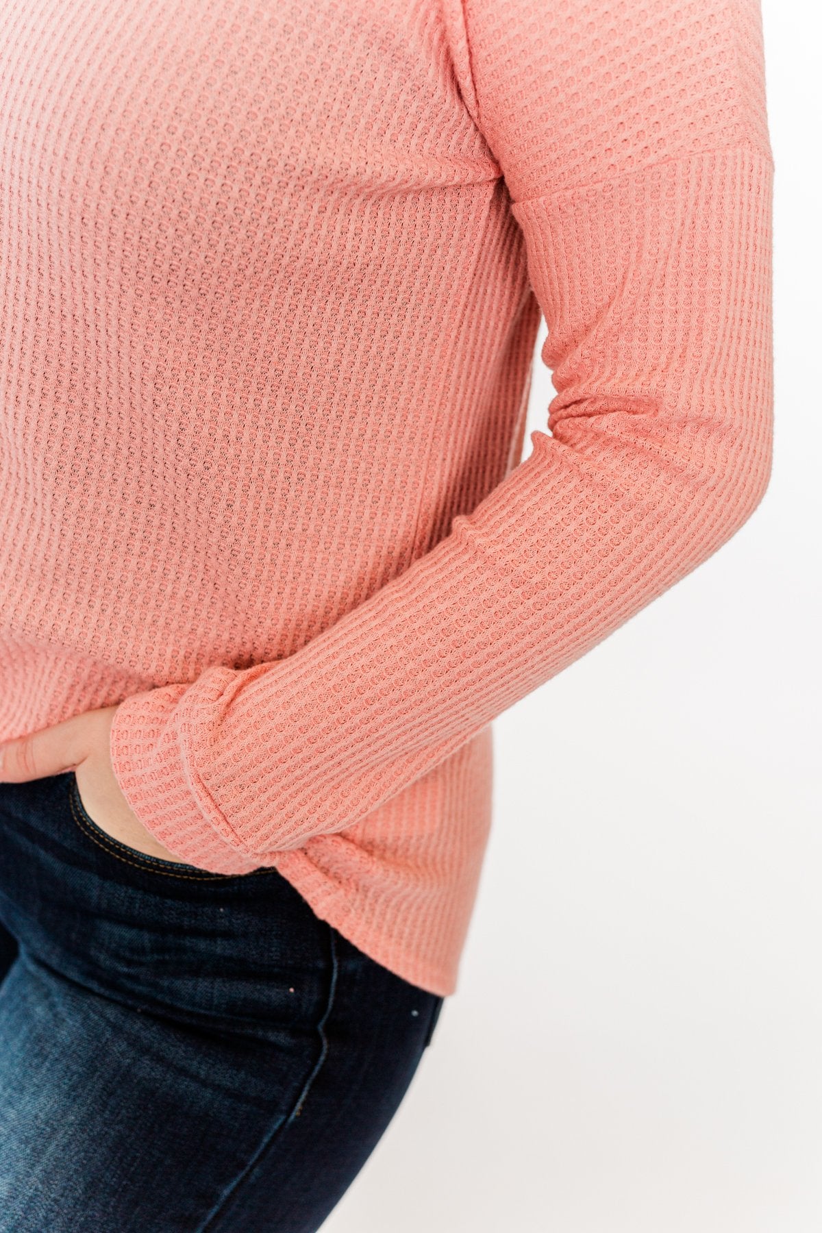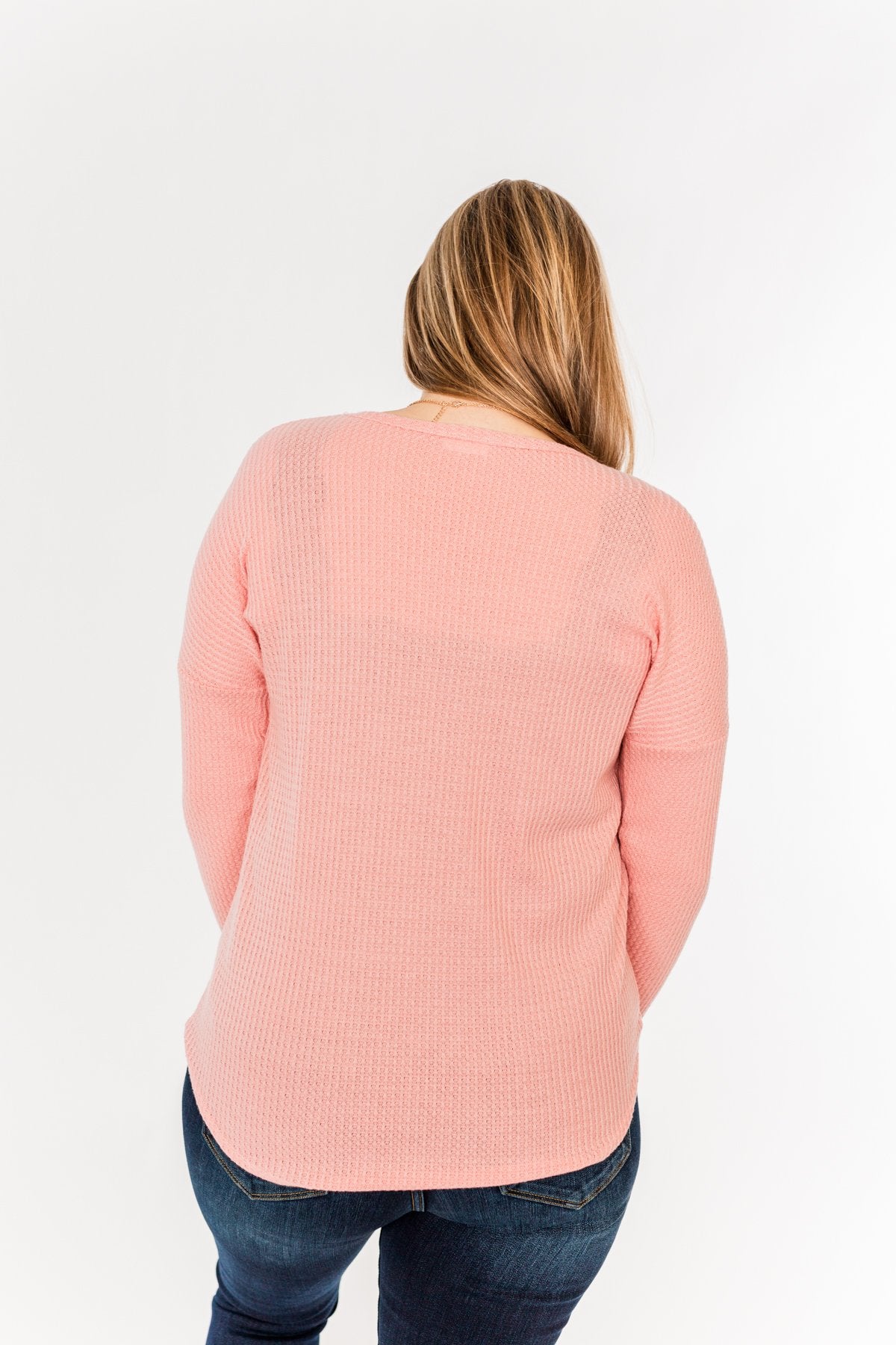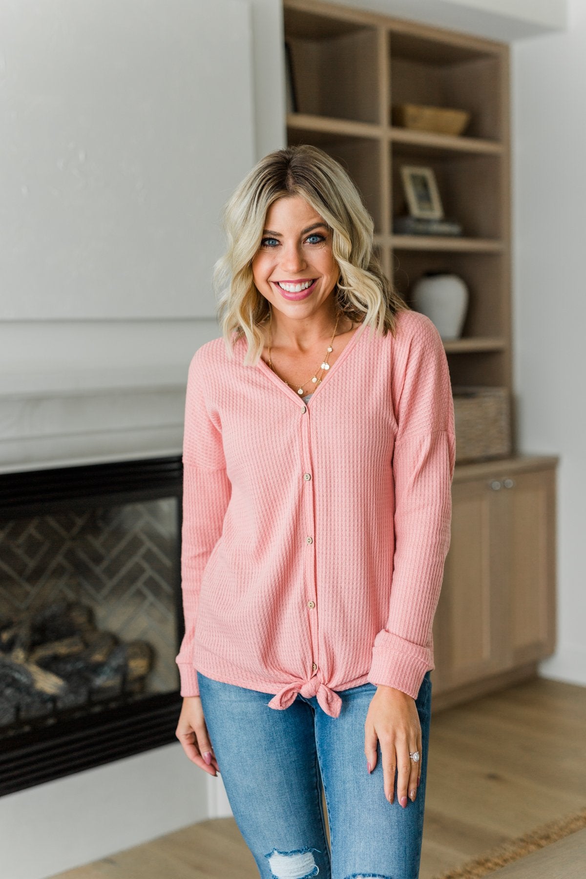 Thermal Button Knot Top- Soft Pink