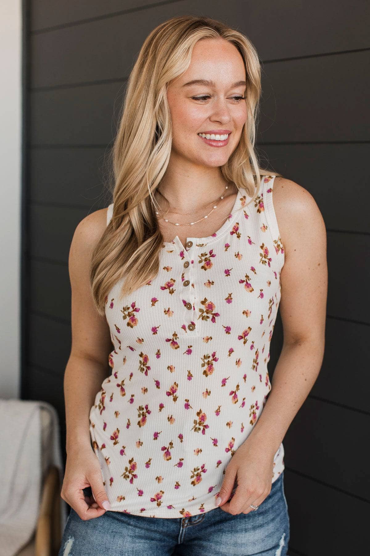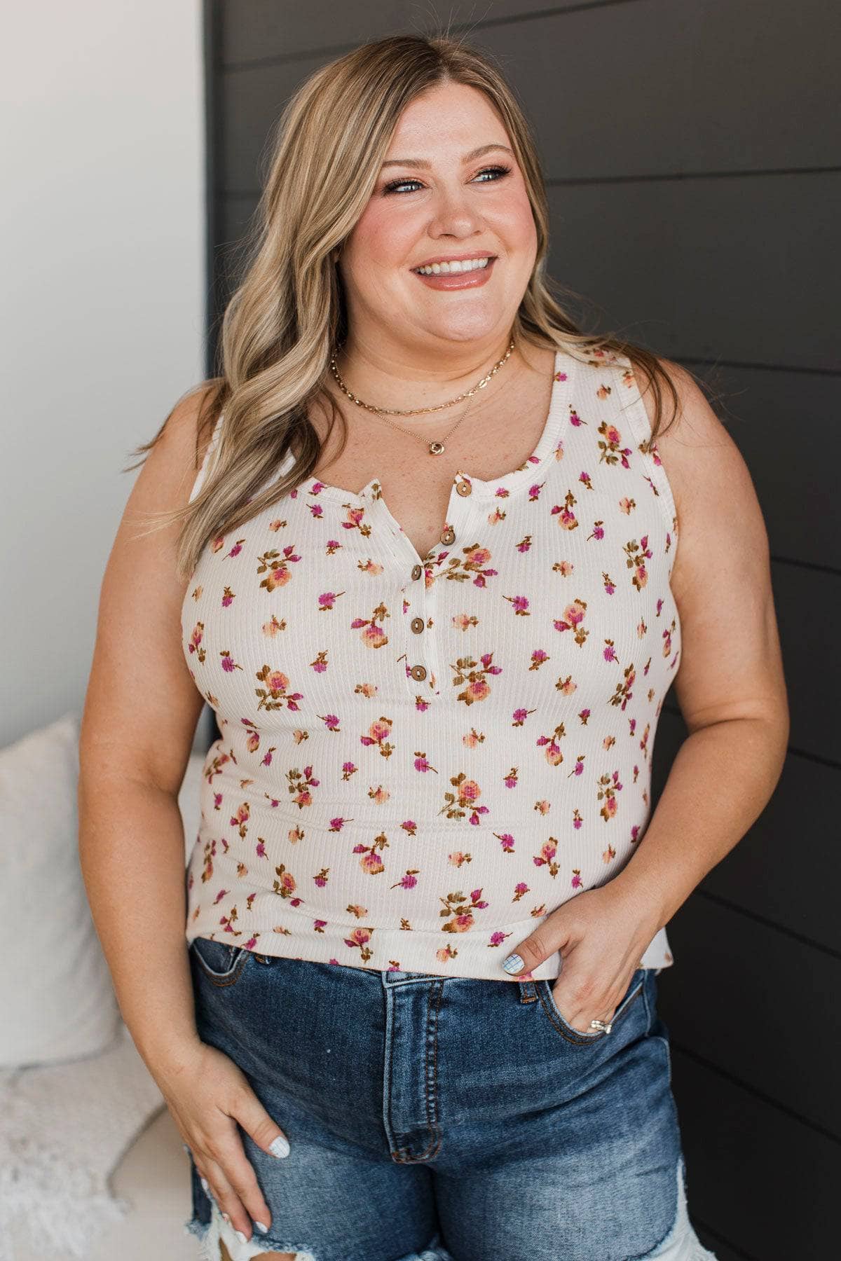 Fresh Mornings Floral Tank Top- Ivory & Pink