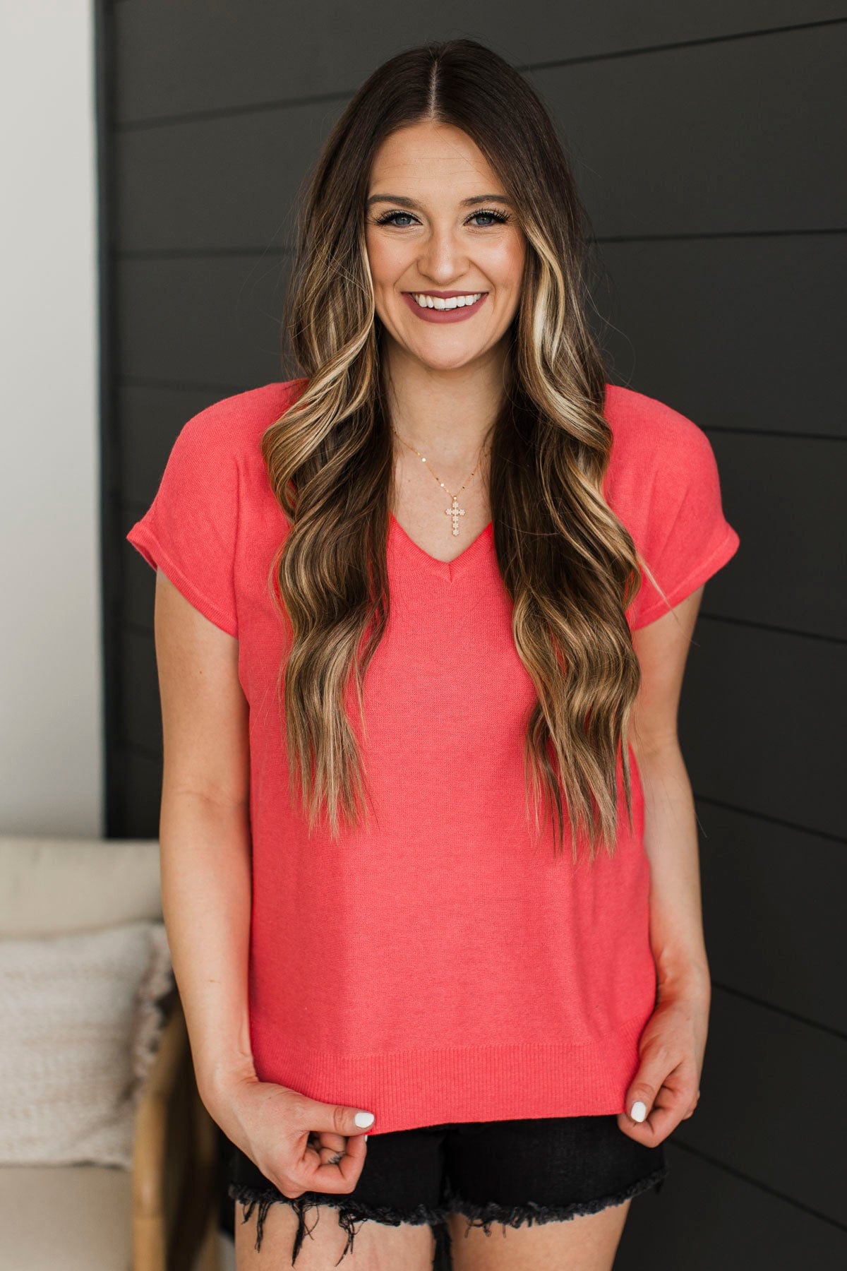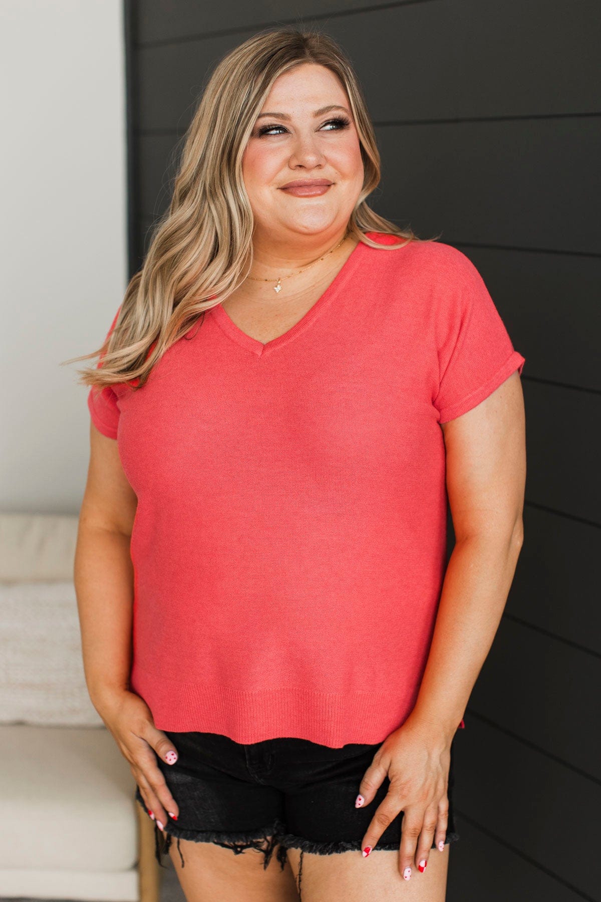Confident Cutie V-Neck Knit Top- Coral