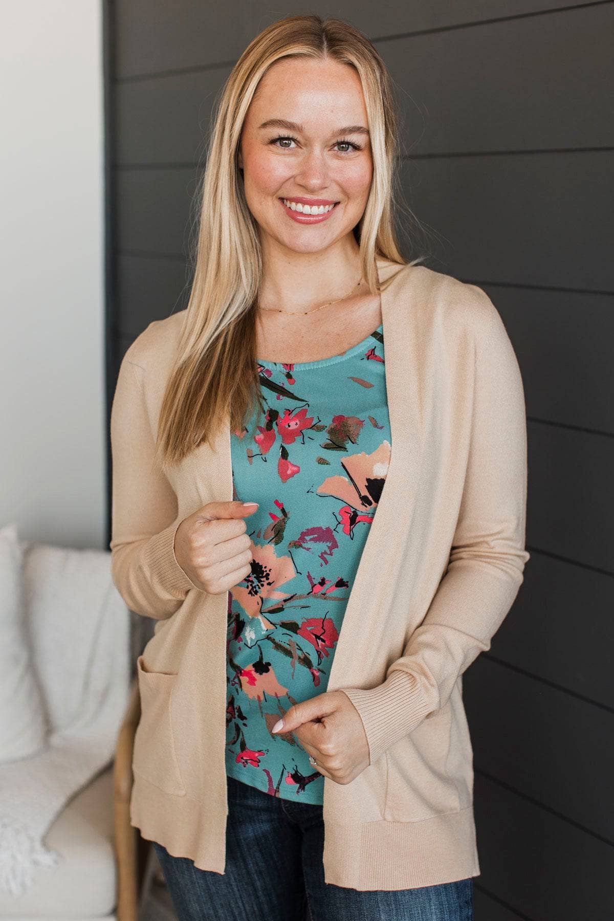 Effortless Pick Open Front Cardigan- Almond