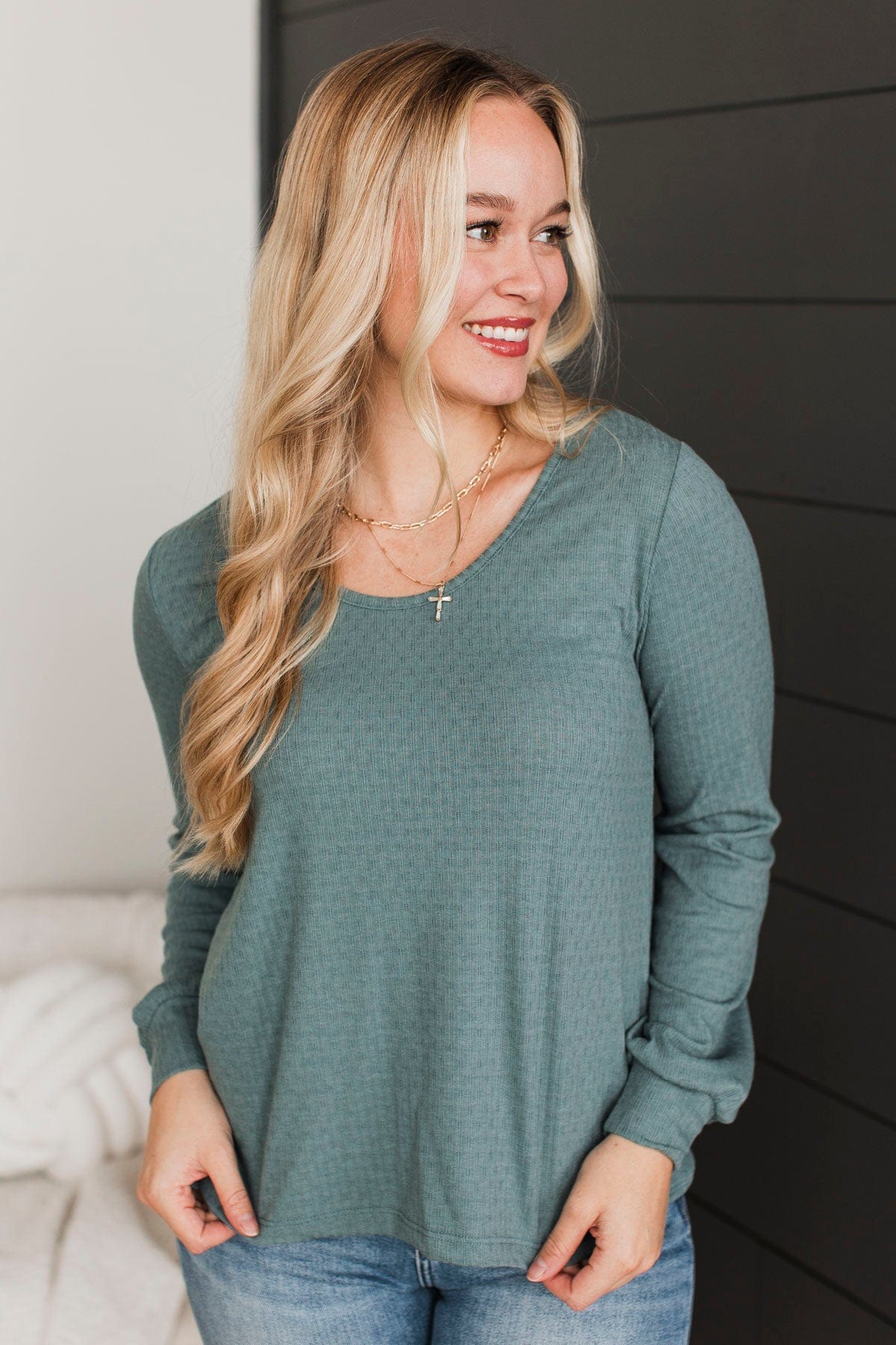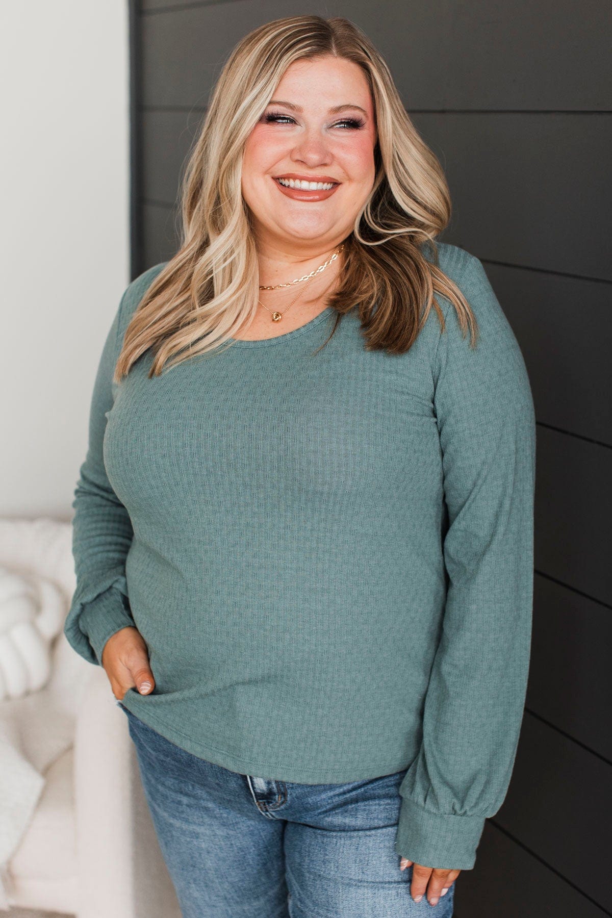 So Relatable Long Sleeve Top- Dusty Blue