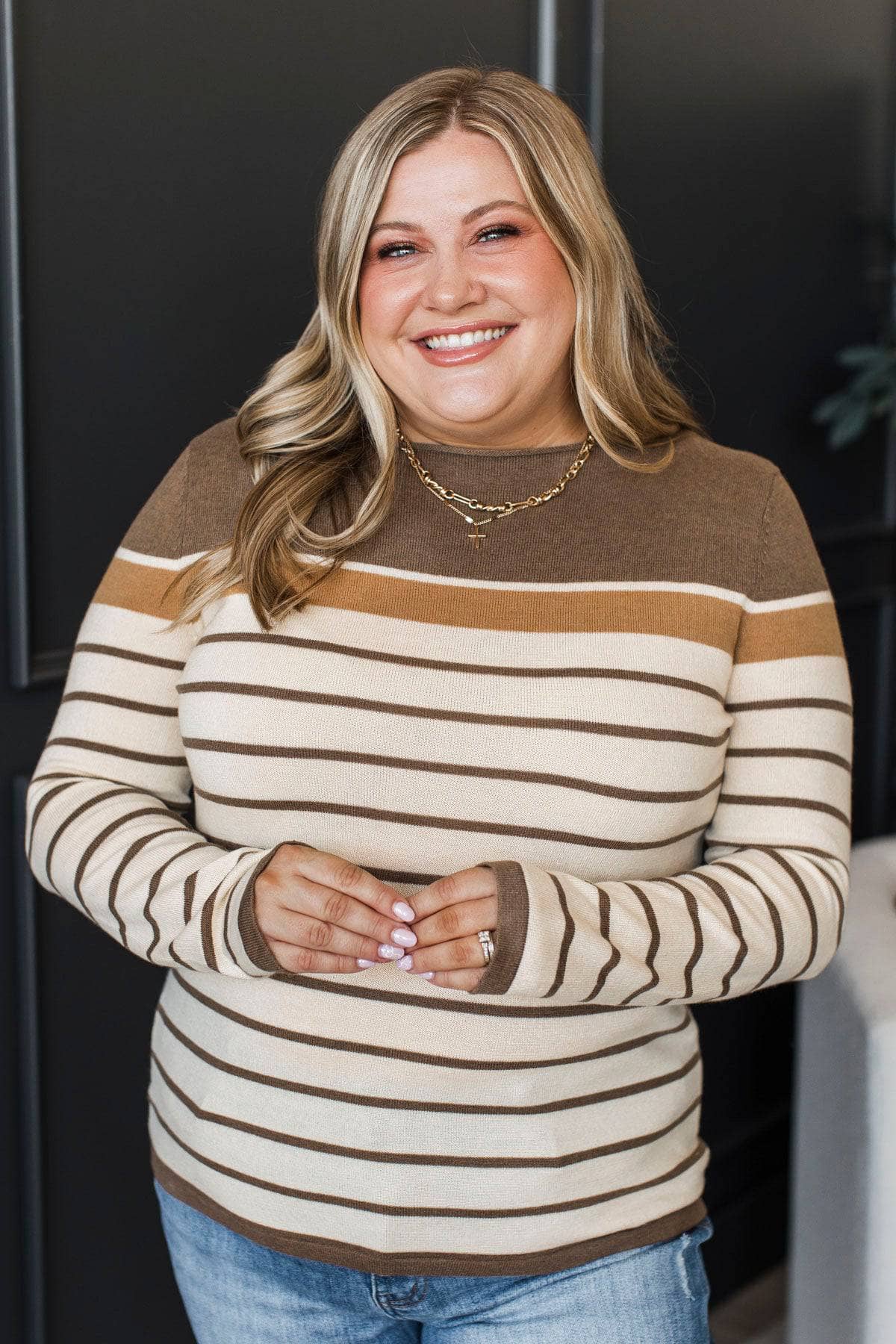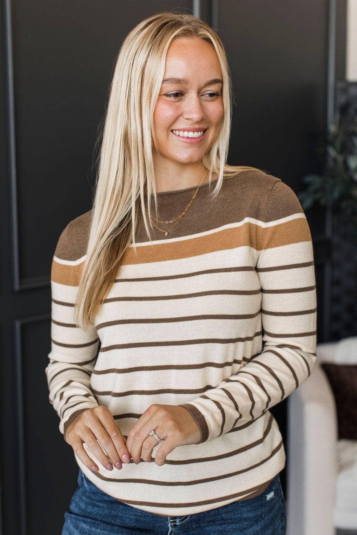 Can't Stay Away Striped Sweater- Brown & Camel
