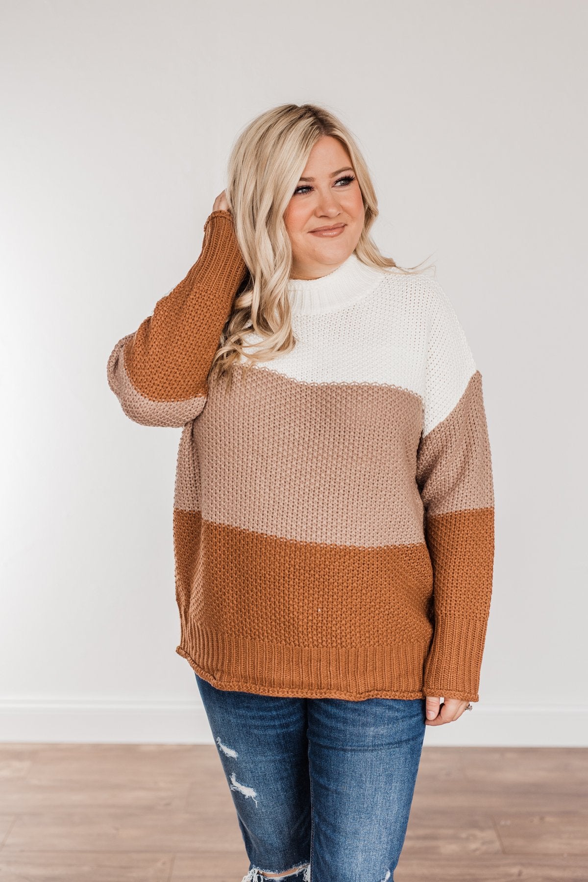 Warm & Toasty Color Block Knit Sweater- Mocha & Rust