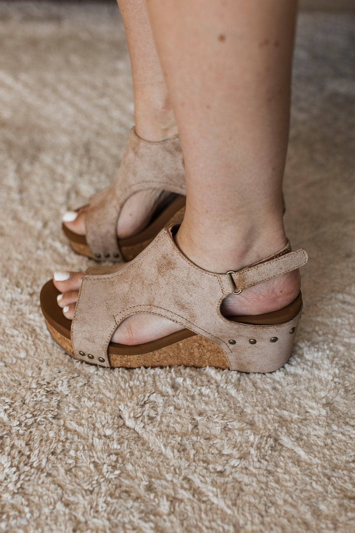 Corky's Bashful Wedge Sandals- Caramel