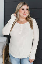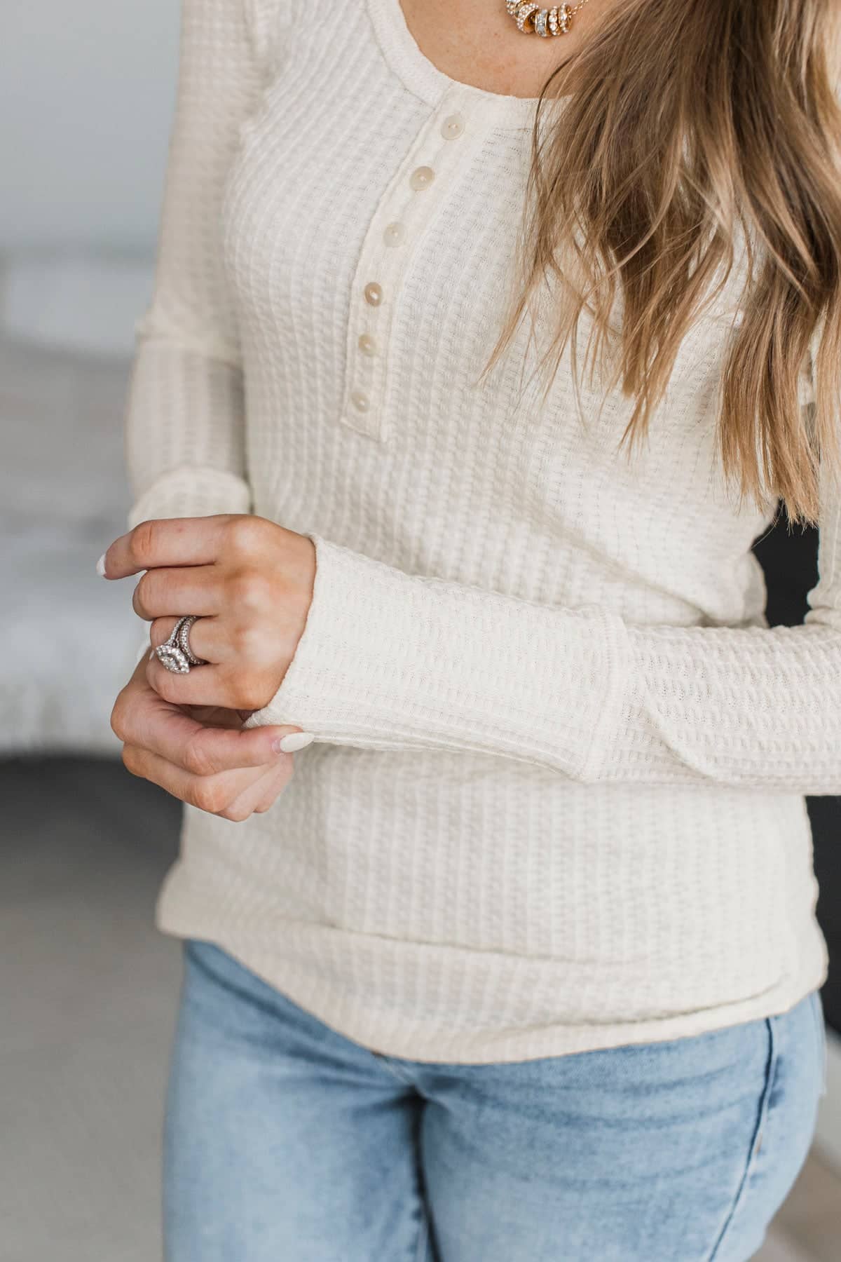 Worth The Risk Long Sleeve Waffle Top- Light Cream